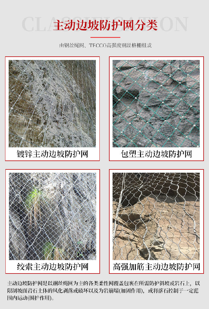 熱門關(guān)鍵詞: 主動邊坡防護網(wǎng) 被動邊坡防護網(wǎng) 環(huán)形防護網(wǎng) 主動高強加筋網(wǎng)